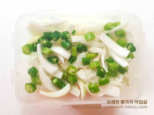 ④ 썰어놓은 청양고추는 양파와 골고루 섞어줍니다.
